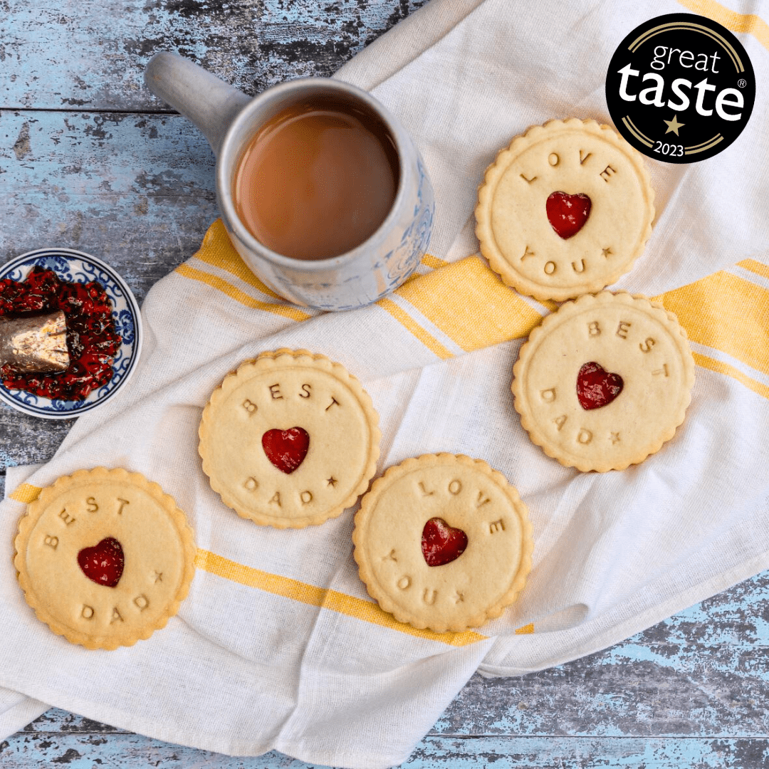 Our signature jam biscuits are inspired by a traditional Austrian Christmas biscuit called Linzer cookie. Co-founder Lisa hails from the South of Germany, and our jam biscuits are made to her Grandmother’s nutless Linzer recipe.