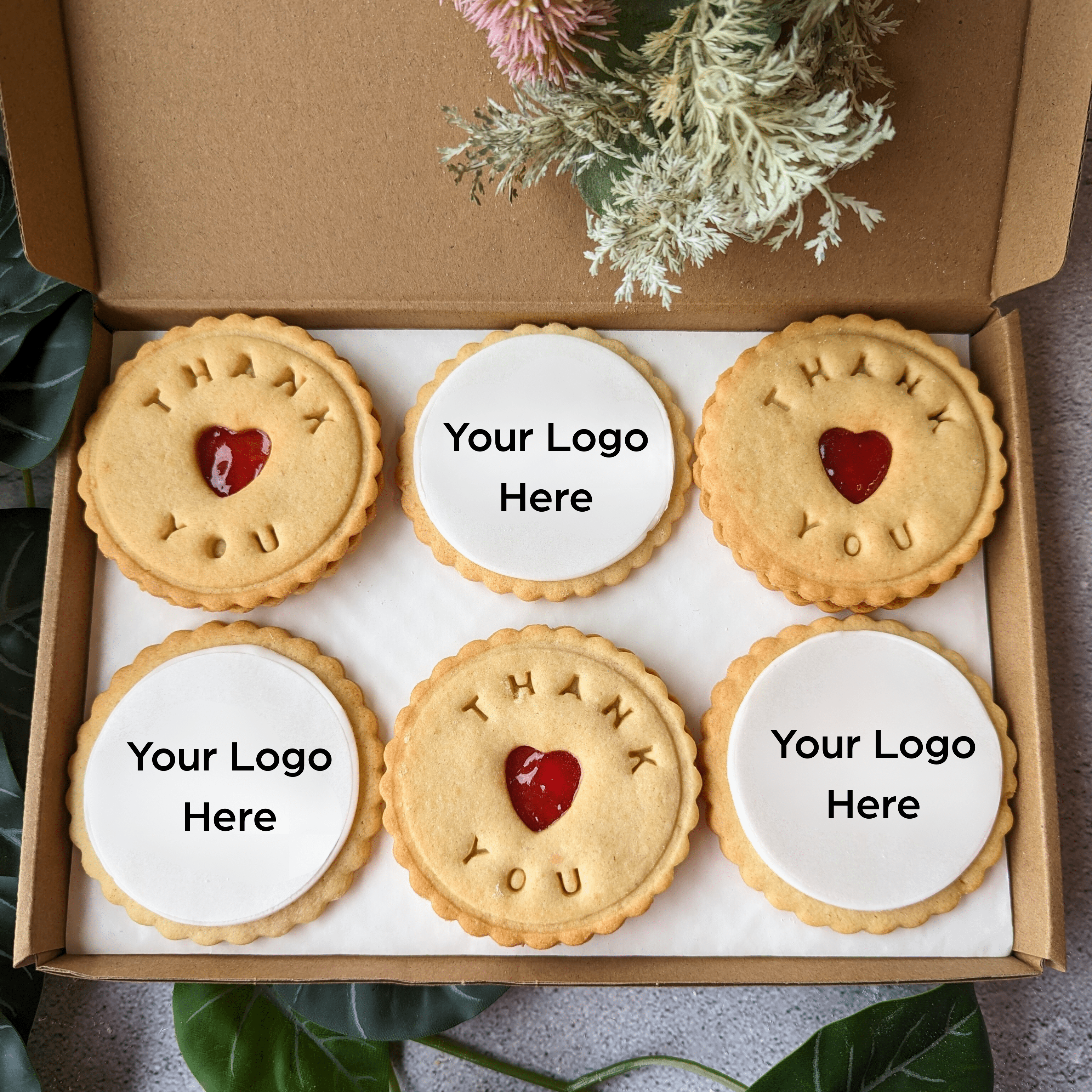 Each biscuit box can be customised with your company logo, a special message, or even individual names.