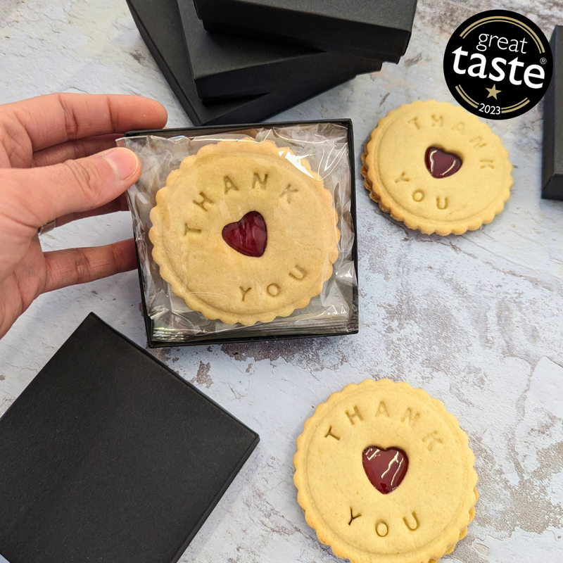 Every Tuesday at 10am we give away a limited amount of our signature 'Thank You' Jam Biscuits. They are limited to one free biscuit per person and can include a gift note.