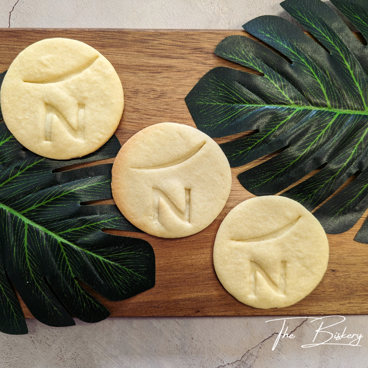 300 logo impressed vegan, gluten-free fondant biscuits