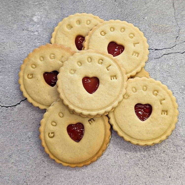Handcrafted jam biscuits embossed with Google on them – what a fun treat! Perfect for innovative marketing campaigns with a fun twist.