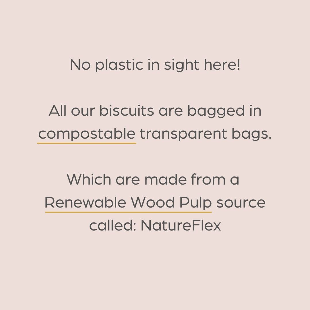 - We individually wrapped each jam biscuit in a compostable transparent bag.