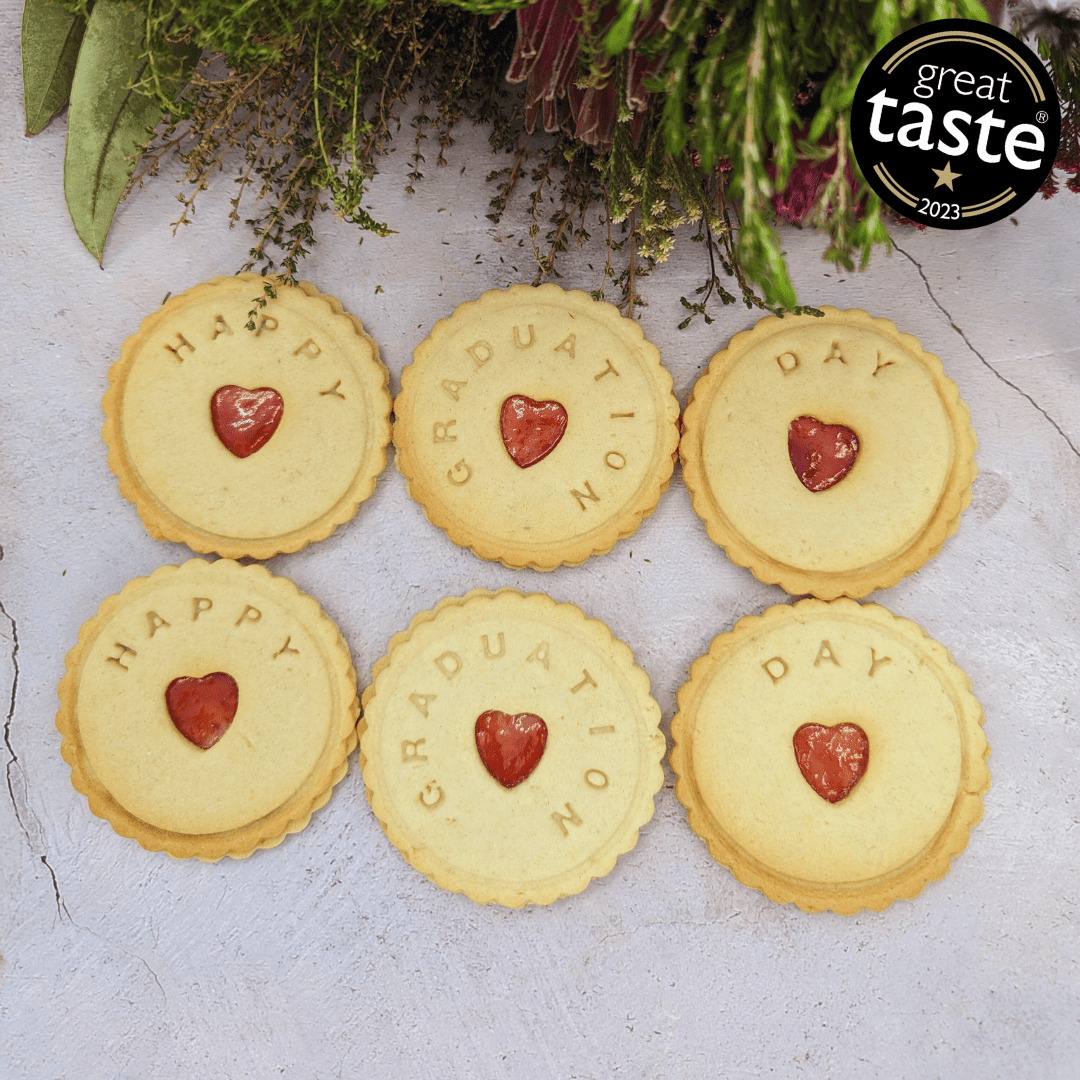 All Graduation Jam biscuits are perfectly hand-crafted to evoke a sense of celebration. Our signature jam biscuits are filling with a heneroud helping of luscious red currant jelly, providing a burst of fruity goodness in every bite.